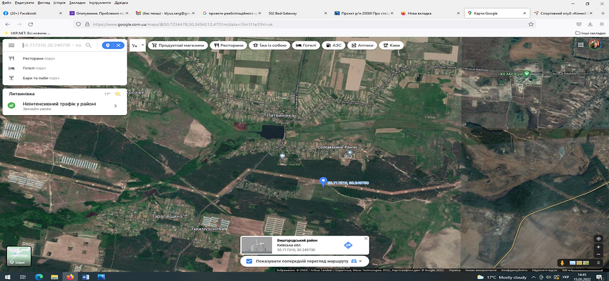 Address: Kyiv region. Vyshhorod district, village Litvinovka. From Kyiv to the village of Litvinovka distance 55 km.